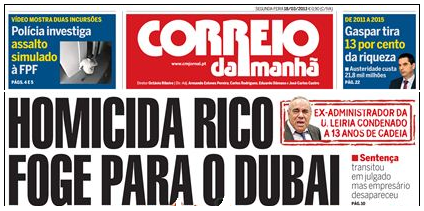 "António Cerejo Bastos, de 55 anos, ex-administrador da SAD da União de Leiria, está escondido no Dubai. Recorde-se que o empresário, principal promotor do aparthotel do Galante, foi condenado a 13 anos de cadeia por ter morto um assaltante que entrou na sua empresa para roubar gasóleo. Apanhado por elementos da GNR, estava já preso e algemado quando António Bastos disparou uma arma que levava consigo, tendo-o morto."(Noticia compilada do Correio da Manhã, 18.03.013. Titulo nosso.)