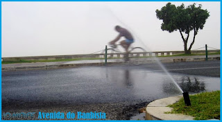 "Vários dos regadores da avenida do Brasil estão mal posicionados, a apontar para a estrada, ou simplesmente a vazar água. Mas este que registei deverá ser o "mais interessante", porque está a apontar para o lado oposto da relva, estando mesmo só a regar a estrada ou a lavar os carros que passam!