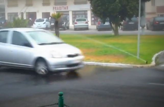 Neste caso foi um ciclista que apanhou uma ‘valente’ molha! Que pode ver no You Tube sem se molhar! CLIQUE NA FOTO!" » » » » » » » »