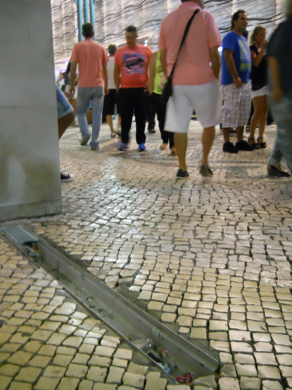 Chegámos a casa há poucos minutos depois de uma agradável volta pela esplanada, avenida e Bairro Novo. Aqui chegados sentámo-nos numa das cadeiras da Pizza Hut, ali mesmo à esquina. Seriam aí umas 22h00. Escassos minutos depois, e perante o aumento de pessoas a passarem no local (ou não se tratasse de um sábado de agosto) começamos a notar constantes tropeções, e até duas quedas, uma delas com torção de um pé, na esquina da esplanada desta pizzeria.