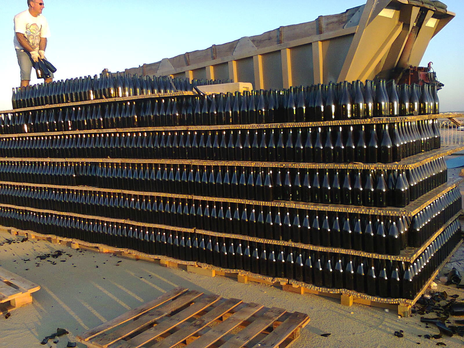 Mas não. Eram apenas simples garrafas de vidro aguardando que fossem transferidas para um contentor, eventualmente para reciclagem..."