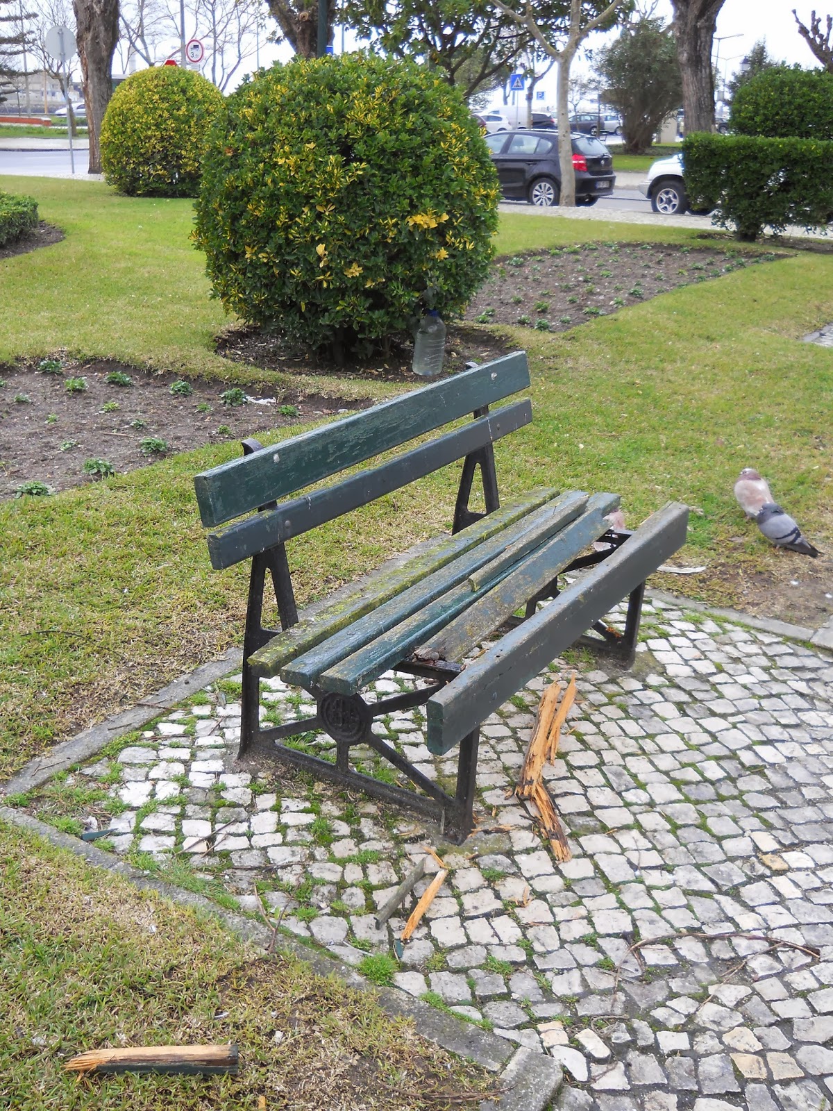 Letreiros e postes de sinalização foram derrubados ou desapareceram em várias ruas, e não se compreende que os dois cocurutos assinalados no Castelo eng. Silva já estejam dobrados... ora naquele local não se previu que haveria vento!?