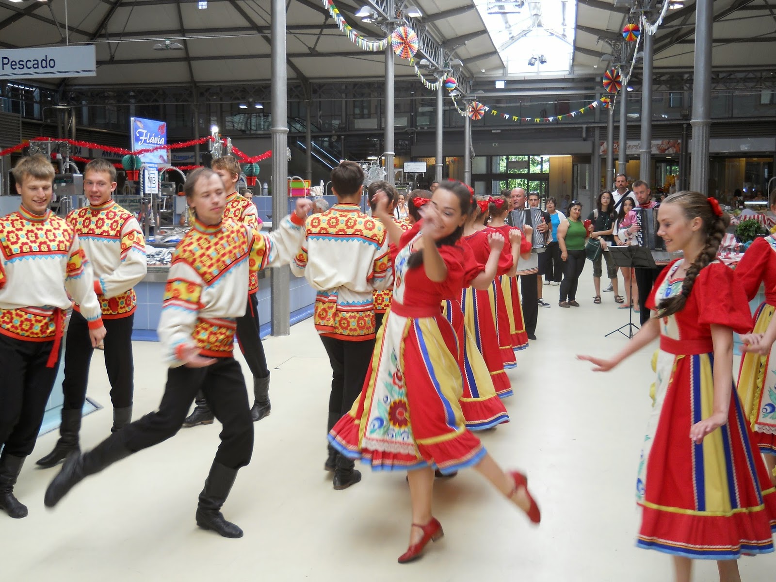 No mercado uma das várias atuações matinais de um grupo folclórico, neste caso russo, dos vários que irão aqui atuar no âmbito do FestiMaiorca (VER PROGRAMAÇÃO AQUI)