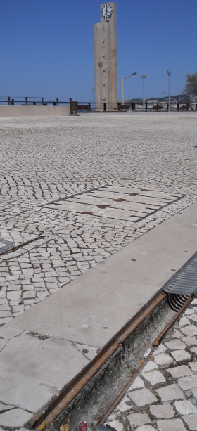 Mas mesmo na esquina da Casa das Conchas o perigo espreita. Esta vala sem grelha é um perigo, muito mais à noite quando “todos os gatos são pardos” e a visibilidade nula… e imagine-se se alguém distraidamente ali coloca um pé!... Ui!