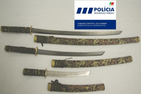 Na passada 6ª feira pelas 17h30, na rua 5 de Outubro em Buarcos, foram apreendidas por elementos da PSP da Figueira da Foz três armas brancas, e identificado o detentor, um cidadão de 65 anos de idade residente na zona de S. Miguel de Poiares.