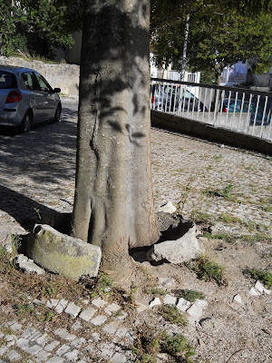 Esta foto foi tirada em 21 de junho, faz precisamente hoje dois meses, mas continua tudo na mesma. Fica ali no desembocar da travessa da rua António Silva Biscaia na rua Fernandes Coelho, junto às traseiras da Igreja Matriz.