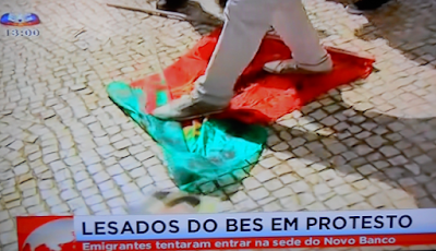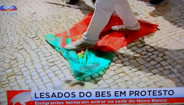 Mas ao vermos a Bandeira Portuguesa ser pisada por um auto-apelidado-lesado emigrante, hoje em Lisboa e filmado pela SIC, não! Nada o justifica! Nada! Ele pisou foi todos os portugueses!