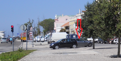 1ª) Um carro (BMW, de matrícula francesa) seguia pela rua 5 de Outubro (paralela à avenida Foz do Mondego) e, quando chegou ao jardim, ao invés de virar à direita (como está sinalizado) virou à esquerda e entrou diretamente na avenida;