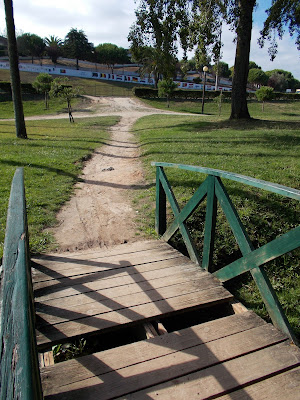 A foto mostra esta ponte, situada na parte norte das Abadias em frente ao Ciclo, onde falta uma trave de madeira precisamente a meio.