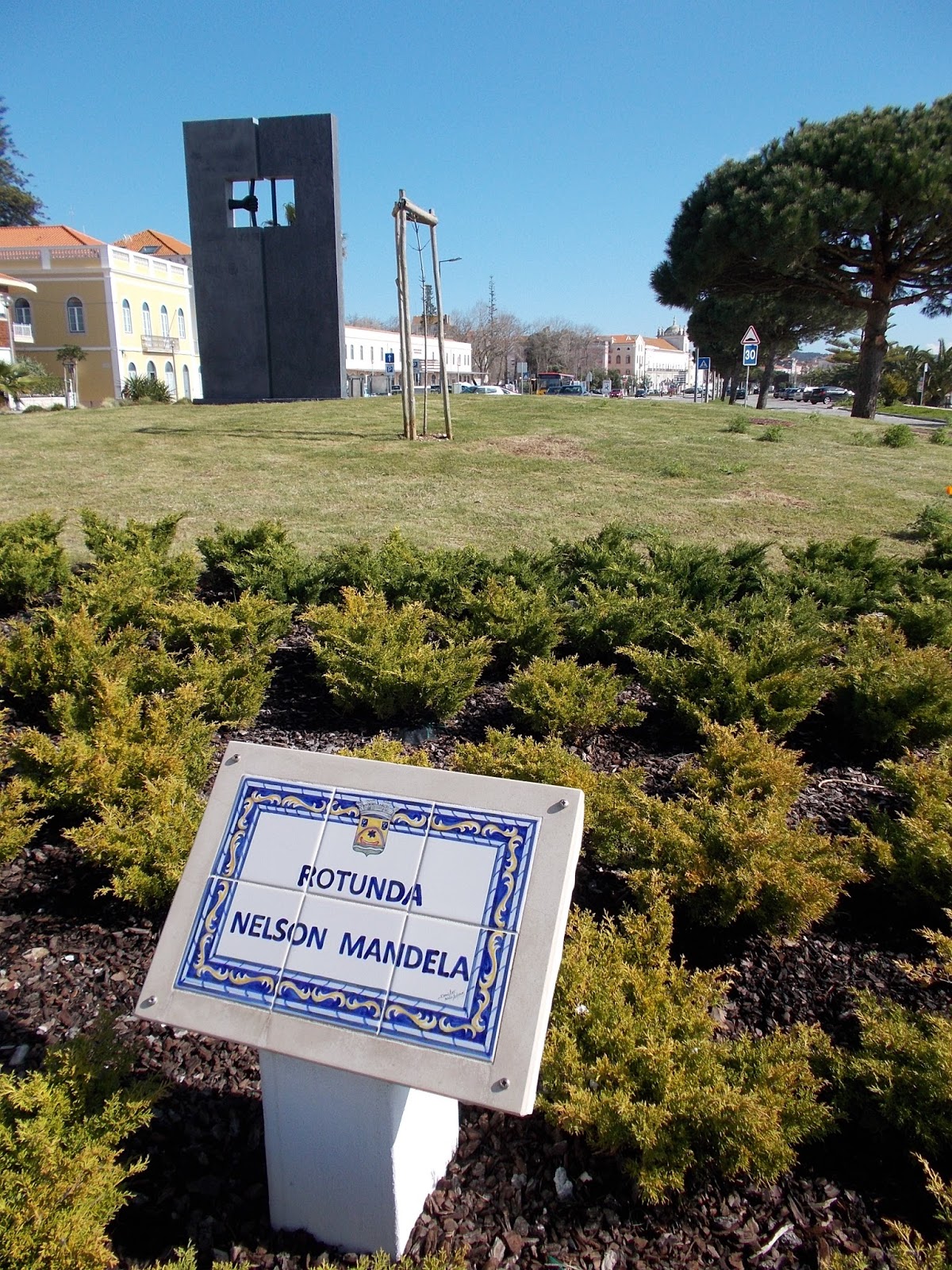 Mas depois de vermos e acharmos adequada a decisão de se inaugurar uma rotunda com o nome de Nelson Mandela, foi uma ‘pegada’ desilusão verificarmos que para o homenagear foi escolhida uma escultura dando a ideia de uma prisão! Então homenageia-se um Homem com a evocação de uma cadeia onde ele esteve preso!? Isto por mais dignos que tenham sido esses 27 anos de reclusão! Escultura que só tem inscrito o seu número de prisioneiro (pois, lá está!...) nº 46664 e que custou ao município figueirense cerca de 5 mil euros!