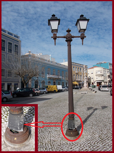 Ora quando se insiste tanto em defender as zonas históricas, se ‘obrigam’ proprietários em cuidar das suas casas situadas em zonas históricas, se aumenta o IMI em casas situadas em zonas históricas, é caricato que um candeeiro histórico de iluminação pública situado em zona histórica tenha o aspeto pré-histórico que este, situado na Praça Velha ali com o Pelourinho da cidade da Figueira da Foz à vista continue assim!