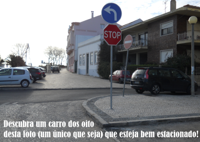 Quem segue por esta via, em direção aos Bombeiros Municipais, não pode aqui virar à esquerda… ou melhor, não deveria poder virar à esquerda… mas como o sinal, que indica proibição, está torto e virado para lá de onde não pode vir trânsito automóvel, até inadvertidamente e sem culpa o poderá fazer!