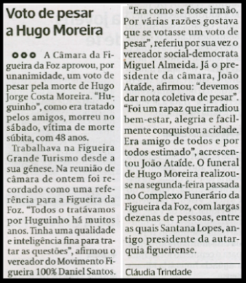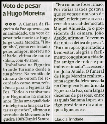 Leitor discorda de como o presidente da Câmara da Figueira da Foz se referiu a Hugo Moreira, recentemente falecido: