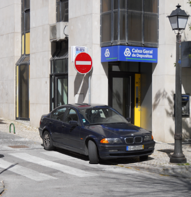 2º) Haja com firmeza e determinação! Estacione do lado esquerdo da via, em cima dum passeio e ocupando uma passadeira para peões, e assim fica a salvo de uma carta da Figueira-Parques.