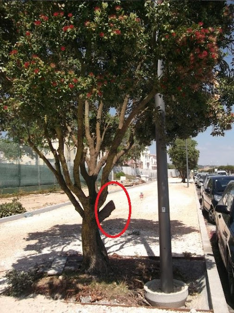 "Ao andar pelos passeios que se estão a construir na renovada avenida, qual o meu espanto ao ver que tinham cortado quase metade de uma árvore para colocar um candeeiro!